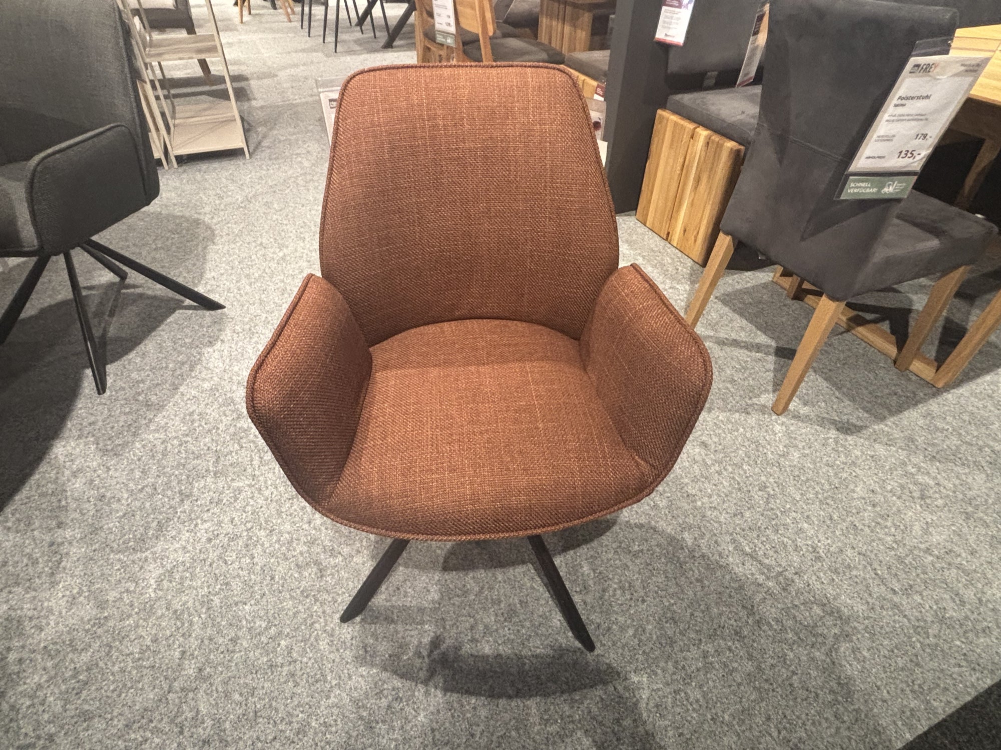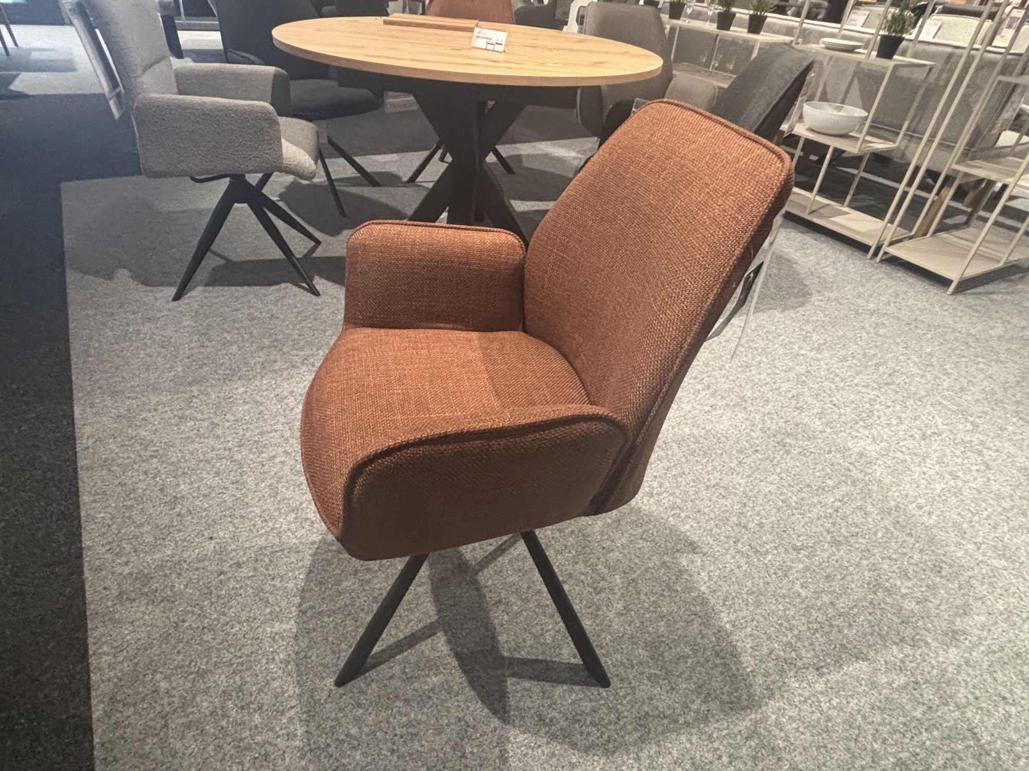 Moderner Armlehnenstuhl mit Bezug in Basel Terracotta und schwarzem, mattem Sterngestell aus Stahl. Mit praktischer Drehfunktion für hohen Sitzkomfort und flexible Nutzung. Jetzt zum attraktiven Abverkaufspreis.