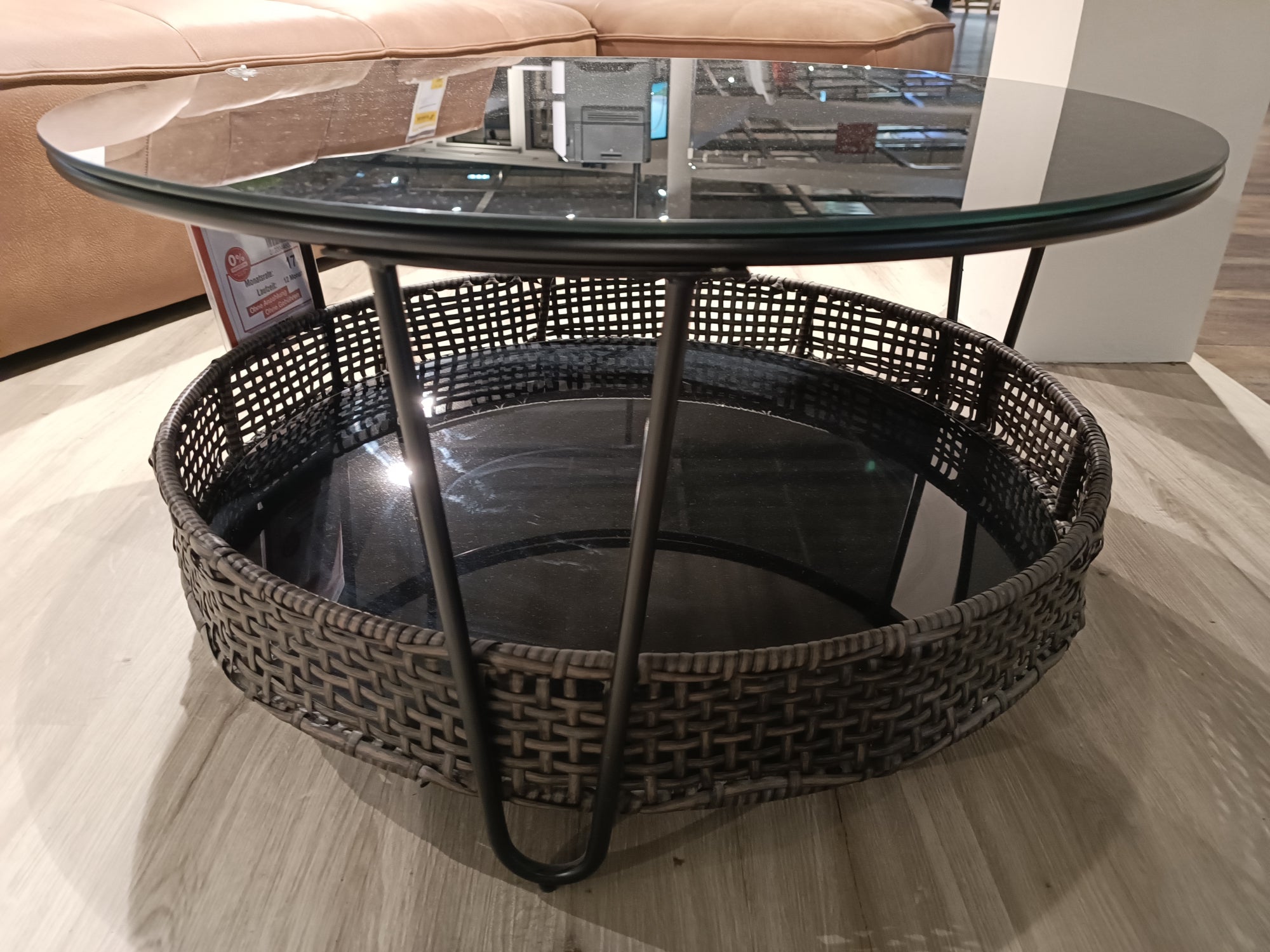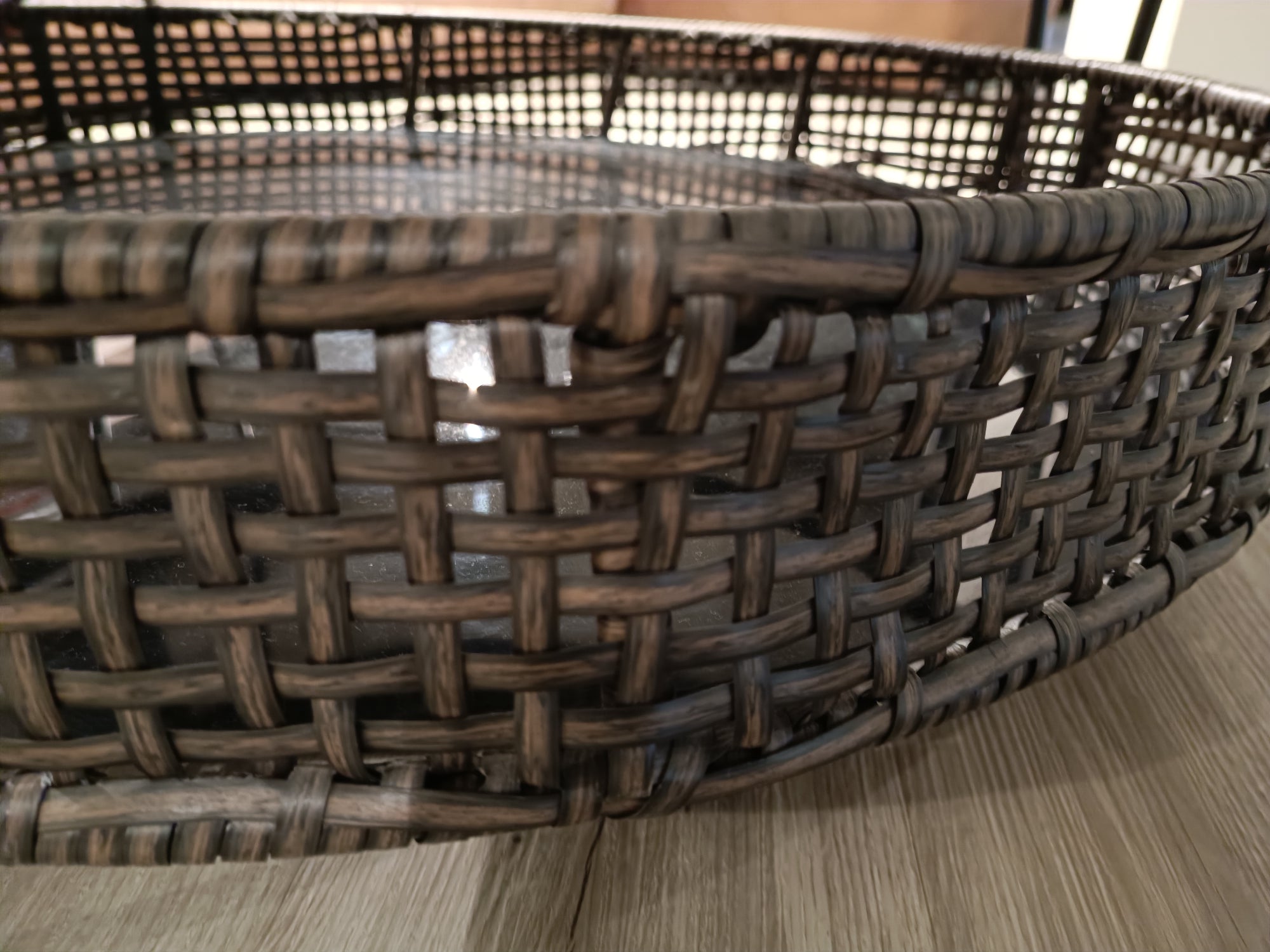 - Sicherheitsglas schwarz lackiert, 5mm mit Kunst-Rattangeflecht