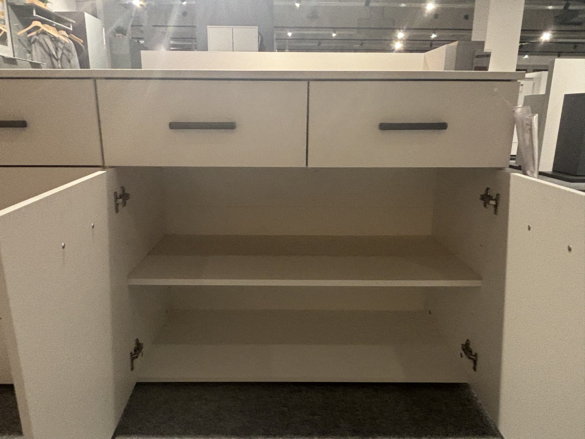 Schlichte und moderne Kommode in Alpinweiß – ideal für zusätzlichen Stauraum im Wohn- oder Schlafzimmer.