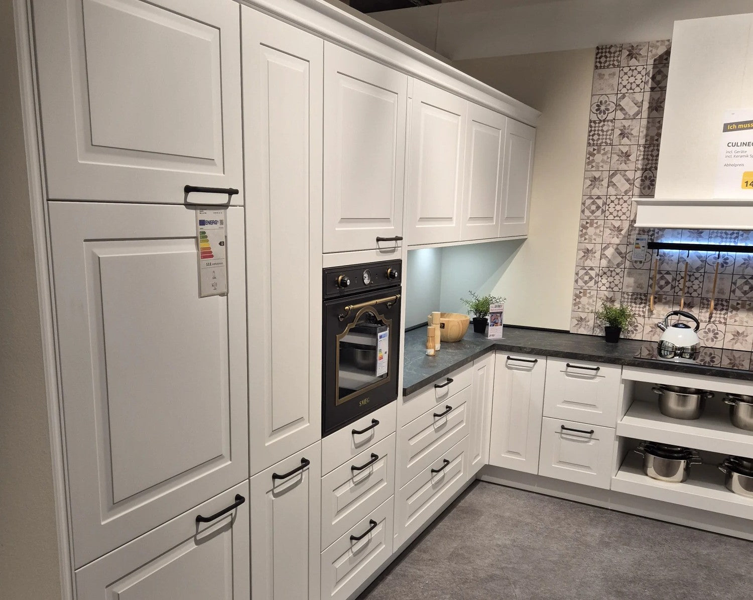 Diese hochwertige Nobilia Culineo C706 Landhausküche vereint klassischen Landhausstil mit moderner Funktionalität und ist die perfekte Wahl für alle, die zeitlose Ästhetik und Qualität „Made in Germany“ schätzen.