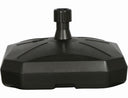 Aus anthrazitfarbenem Polyethylen-HD UV-stabilisiert und lichtecht, mit Laufrolle, füllbar mit Wasser (50 l) oder Sand (80 kg), für Schirmstöcke mit einer Spannweite von maximal 4x4 Meter und einem Rohr mit einem Durchmesser von 30 bis 55 mm.