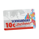 Eine Barauszahlung oder Teileinlösung ist nicht möglich. Alle teilnehmenden Unternehmen und weitere Informationen finden Sie unter https://stadtmarketing-schwandorf.de/projekte/schwandorf-10er/