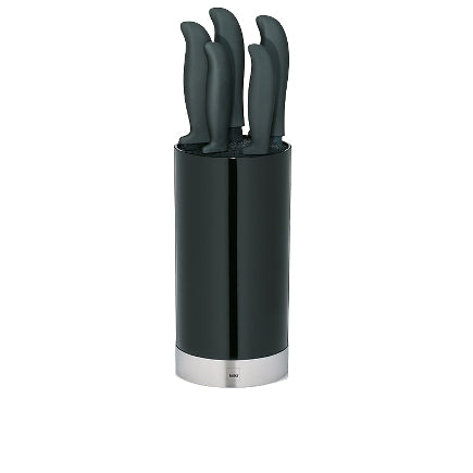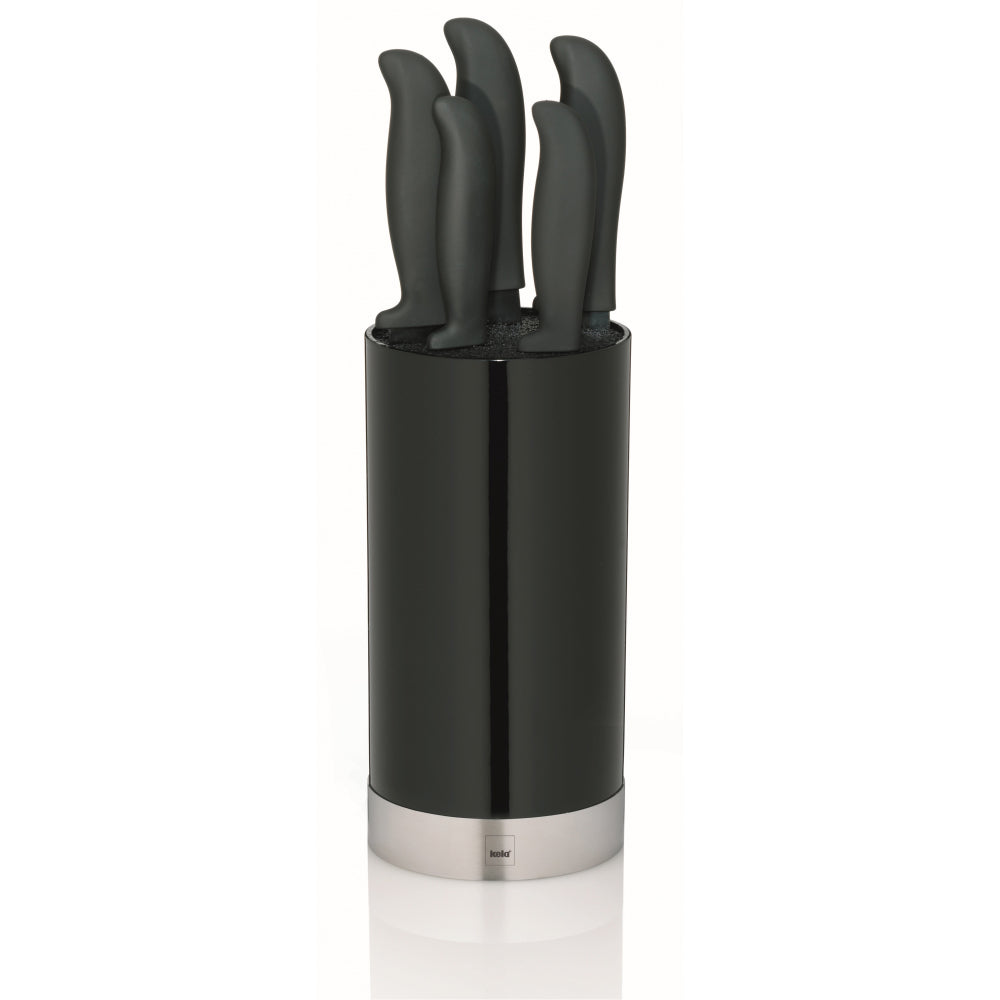 6-tlg. Messerblock aus Kunststoff, bestehend aus Kuechenmesser, Ausbeinmesser, Brotmesser, Fleischmesser und Chefmesser aus Messerstahl, D/H ca. 11/22,5 cm