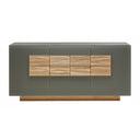 Glas/Front: Montegrau/Massivholz (Spaltholzdesign); Deckplatte: Holz, Wildeiche geölt