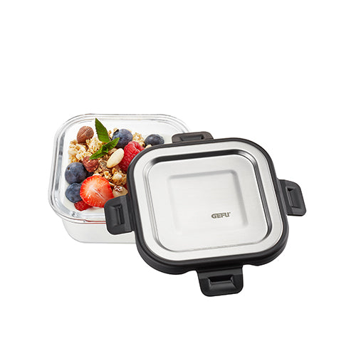 • hochwertiger Borosilikatglasbehälter mit Deckel aus Edelstahl • auslaufsicher dank Silikondichtung und Klickverschluss • luftdicht und aromasicher • gelaserter QR Code zur Vorratskontrolle per App (nur für Android) • Behälter bis zu 300 °C hitzebeständig und -20 °C kältebeständig • Deckel nicht erhitzen • Füllvolumen 300 ml • Backofen- und mikrowellengeeignet