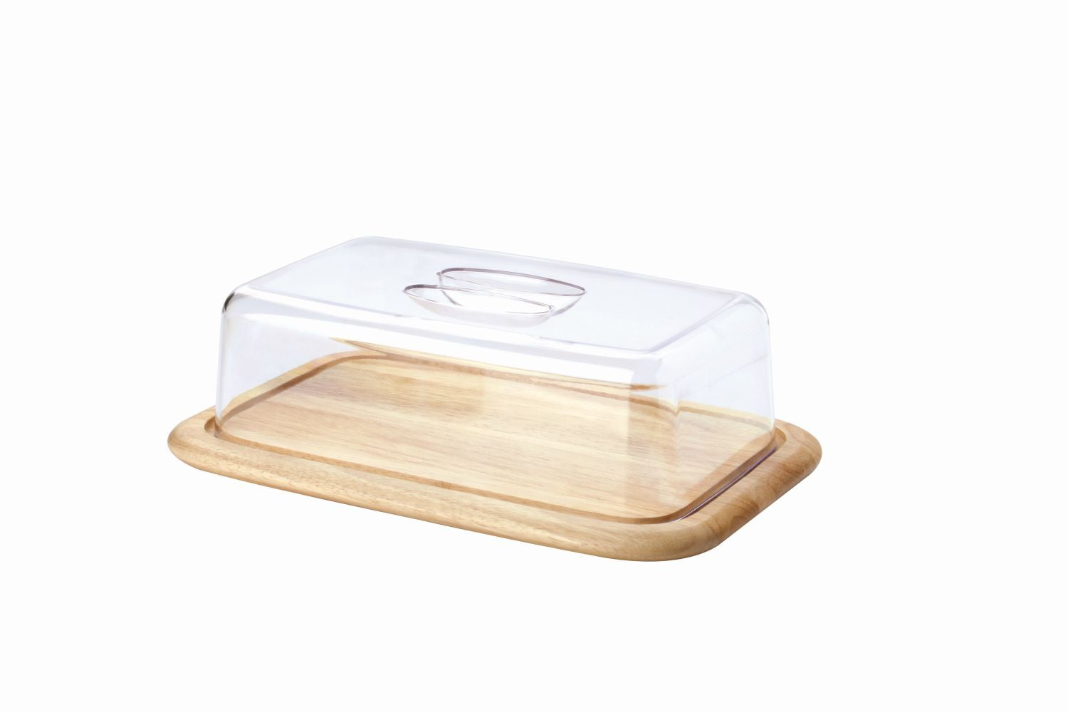2-teilige Käseglocke, bestehend aus einem Holzteller mit breitem Rand zum guten Greifen und leichter Kunststoffglocke zum Präsentieren von Käse, Aufschnitt usw.