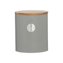 MATERIAL – strapazierfähiger, besonders robuster pulverbeschichteter Stahlbehälter in schönem Pastellton mit Bambusdeckel