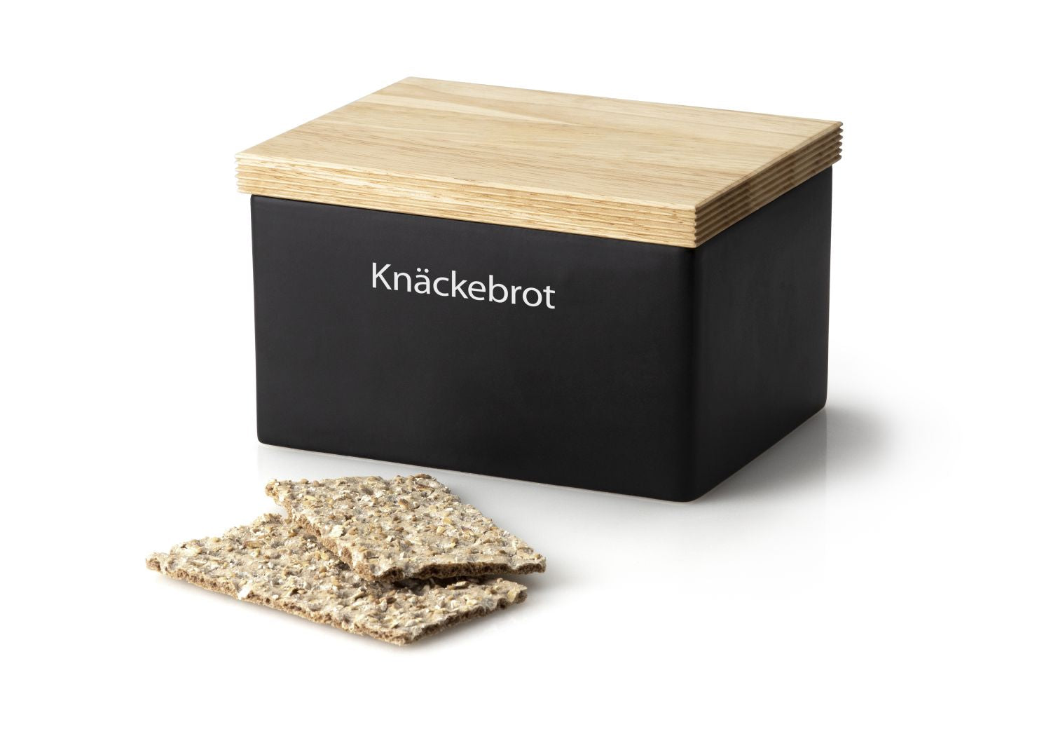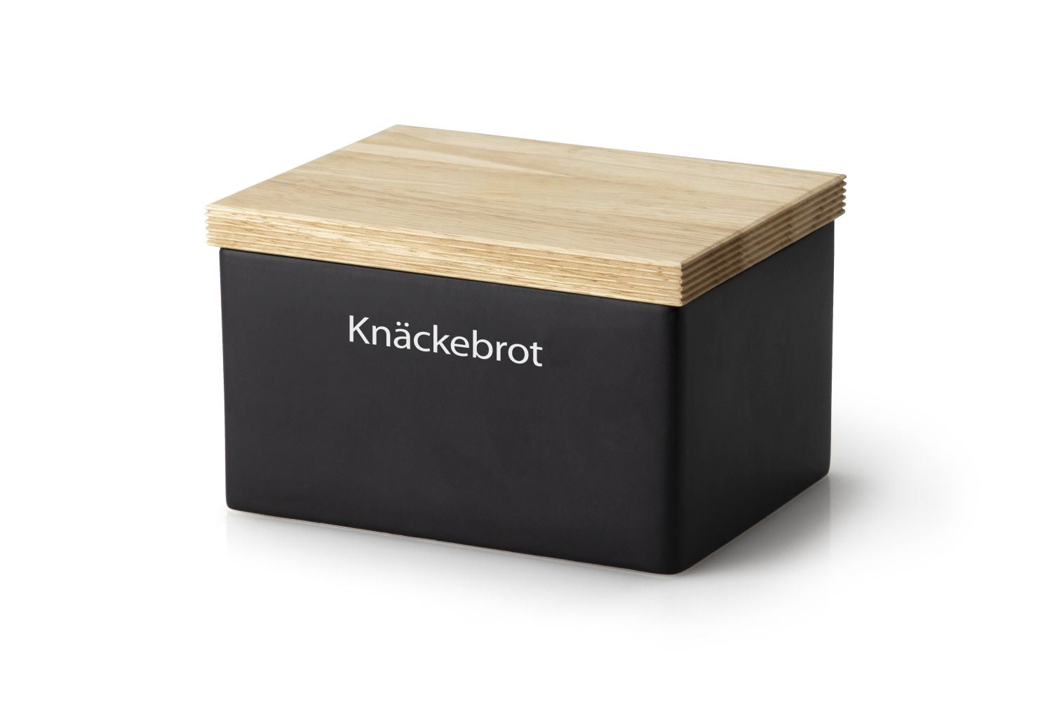 Die praktische Vorratsdose aus schwarzer Keramik passt mit dem hellen Holzdeckel in jede Küche. Die Änderung der Beschriftung ist kein Problem - innen liegen Etiketten mit alternativen Beschriftungen.