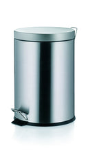 Treteimer aus glänzendem Edelstahl. Die Gummierung an der Unterseite sorgt für festen Stand. Der Inneneimer ist aus schwarzem Kunststoff und hat einen Tragehenkel. Der Abfalleimer ist 25,5 cm hoch, der Durchmesser beträgt 17 cm. Volumen 3 l.