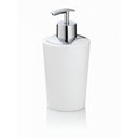 Für ein traumhaft einheitlich ausgestattetes Badezimmer – Badserie Marta. Dieser Seifenspender aus Kunststoff in matter Optik ergänzt die bestehenden Accessoires der Serie sinnvoll. Er fasst bei einer Höhe von 17 cm 350 ml Seife und beseitzt einen Pumpkopf aus Kunststoff, verchromt. Farbe: Weiß.