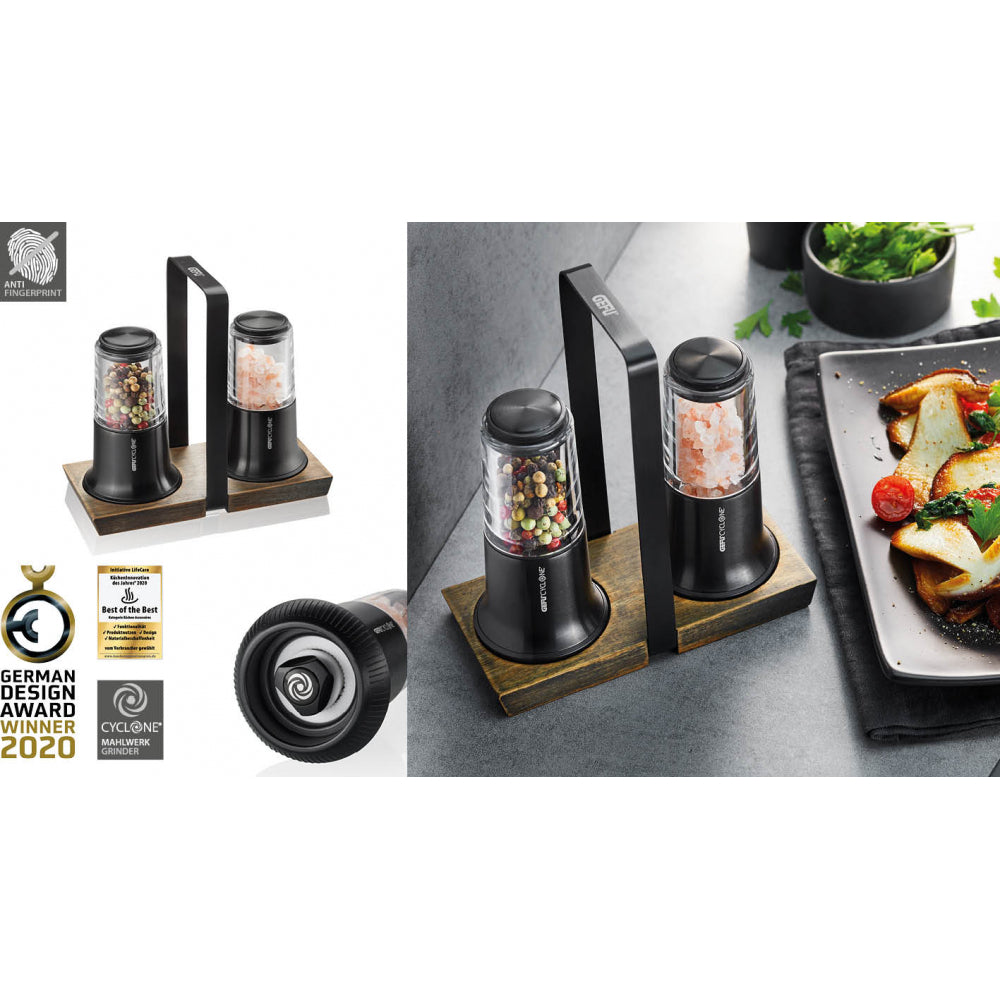 • inklusive Menage aus hochwertigem Akazienholz • hochwertiges Keramik-Kegelmahlwerk CYCLONE® für maximale Präzision und Effizienz • stufenlose Mahlgradeinstellung: von pulverfein bis extragrob • leicht befüllbarer Gewürzcontainer • luftdichter Deckel für optimalen Aroma- und FeuchtigkeitsschutzPFLEGEHINWEIS