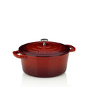 Trendiges Kochgeschirr mit langer Lebensdauer aus der Kela-Serie Calido: Der runde Bräter mit glänzender Oberfläche und mit Deckel hat einen Durchmesser von 26 cm und fasst 5,0 Liter. Dieser rote Bräter ist aus Eisenguss und innen emailliert in Beige. Der Bräter eignet sich bestens dazu Fleisch scharf anzubraten (bis 300° C) und für Schmorgerichte, welche lange im eigenen Saft schmoren sollen. Der Bräter ist Teil einer umfangreichen Kochgeschirr-Serie!