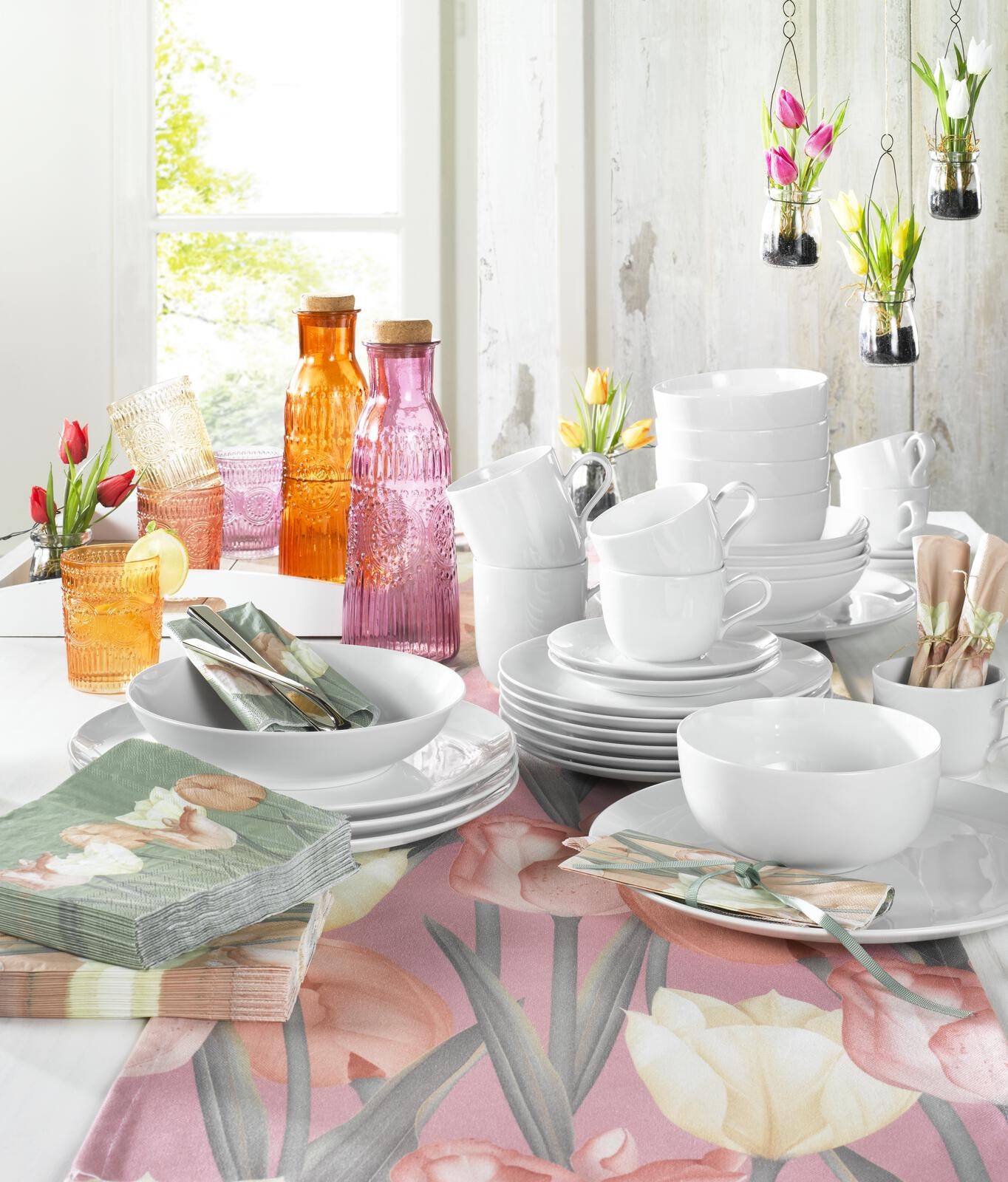 Von der Kaffeeobertasse, über die -unterasse bis hin zum Kuchenteller, das 18-teilige Kaffeeservice von Seltmann lässt keinen Wunsch offen. Das zeitlose weiß des Porzellans harmoniert dabei ideal mit der schlicht weichen Formgebung des Geschirrs. Ideal somit für Kaffee-Anlässe mit Ihren Liebsten. Das Set umfasst dabei sechs Kaffeeobertassen, sechs Kombi-Untertassen sowie sechs runde Frühstücksteller. Sei es für das heimische Frühstück, den Brunch mit Freunden oder für den Kaffee Nachmittag mit der ganzen Familie, die Liberty Serie von Seltmann schenkt Ihnen, wie es der Name verspricht, jegliche Freiheit bei der Verwendung. Sie ist in einem zeitlos weißem Farbton für jeden denkbaren Anlass geeignet und durch ihre schlichte Form in herausragender Ergonomie auch ein absoluter Alltags-Garant. Das formvollendete Porzellan, in einer fließend weichen Form, aus gewohnt hochwertig robuster Seltmann Qualität ist somit ein absolutes Must-Have für jeden Ihrer Anlässe