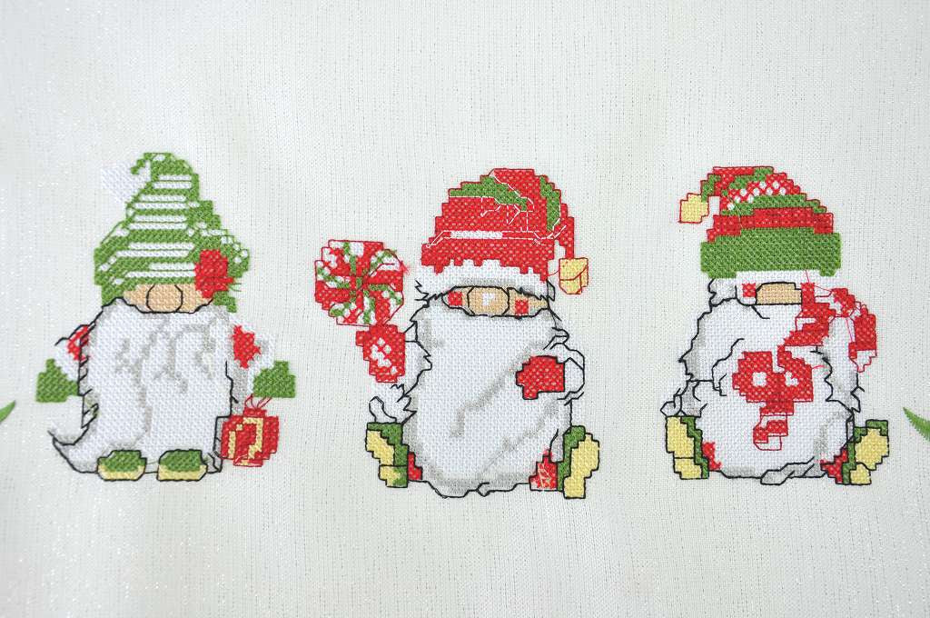 Mitteldecke mit Wichtel-Dekor – Festliche Tischdeko in Creme und Rot