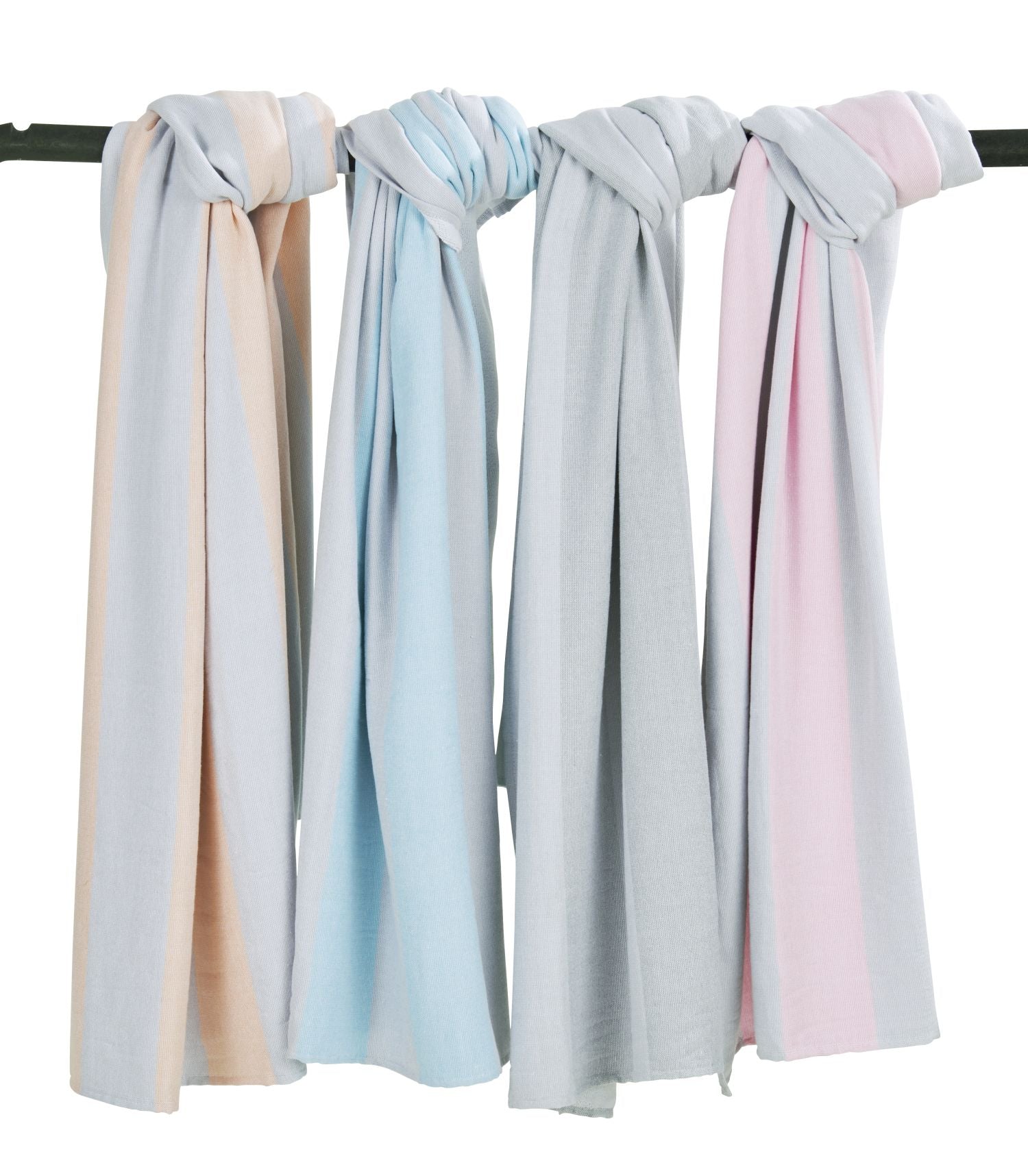 Extra großes Hamamtuchmit auffälligen Neon-Streifen gepaart mit dezentem Grau für einen auffälligen Auftritt am Strand oder am Pool. Als Duschtuch Zuhause bringt das Tuch Farbe in dein Bad und erinnert an Sonne, Meer und Urlaub. Es fühlt sich einfach nur toll an auf der Haut. Weiche, saugfähige Rückseite aus Frottier und schicke Fransen an den kurzen Seiten.