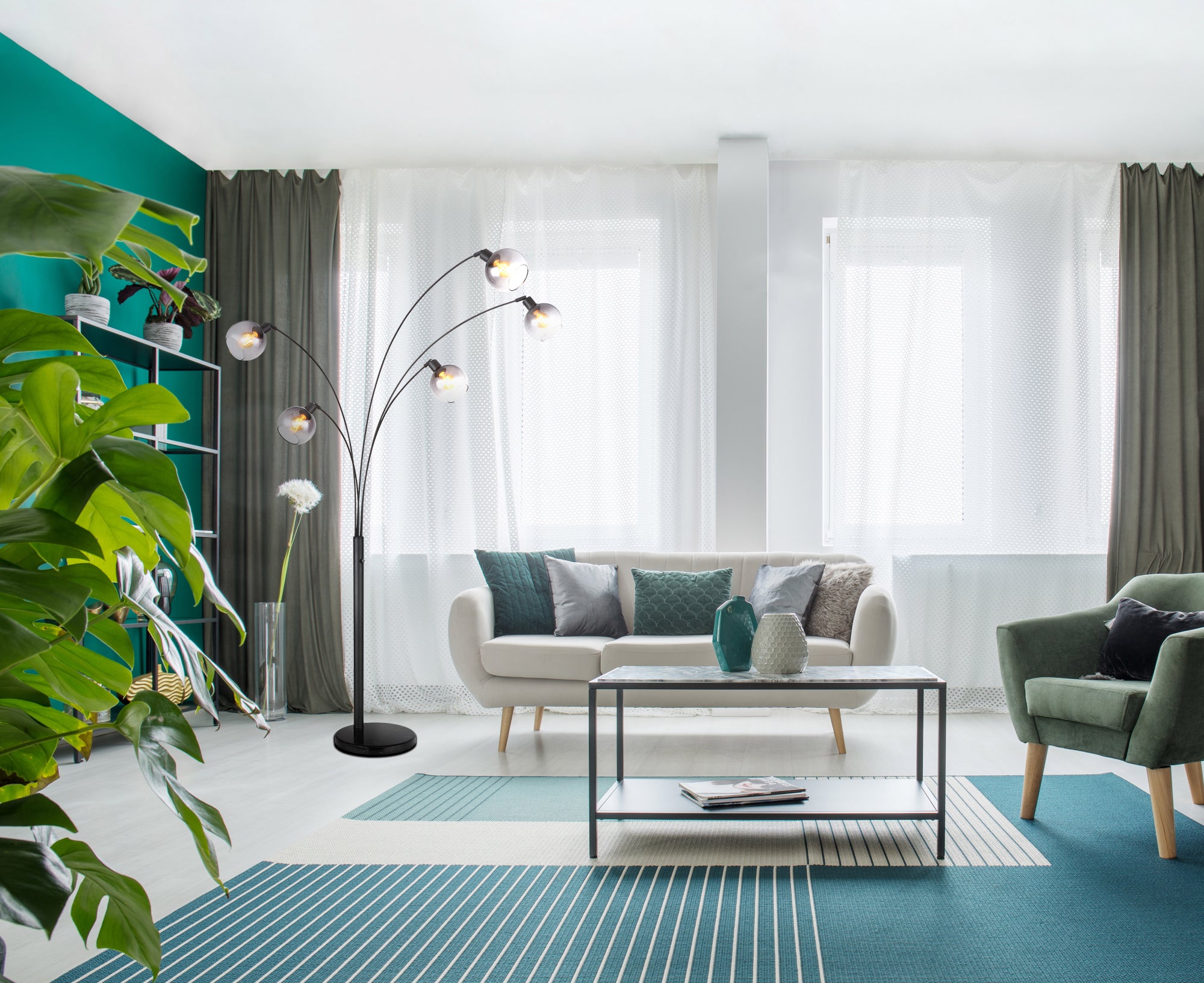 Elegant und modern, das verbindet diese wundervolle schwarz matte Stehlampe der Serie SEYMOUR mit einem Marmorsockel und einer Höhe von 208 cm. Die fünf angebrachten E27 Fassungen werden von rauchfarbenen Glasschirmen umhüllt und durch die E27 Fassungen steht es Ihnen frei, selbst zu entscheiden, welches Leuchtmittel (max. 40W) Sie verwenden wollen und somit auch die Lichtstärke und Lichtfarbe.