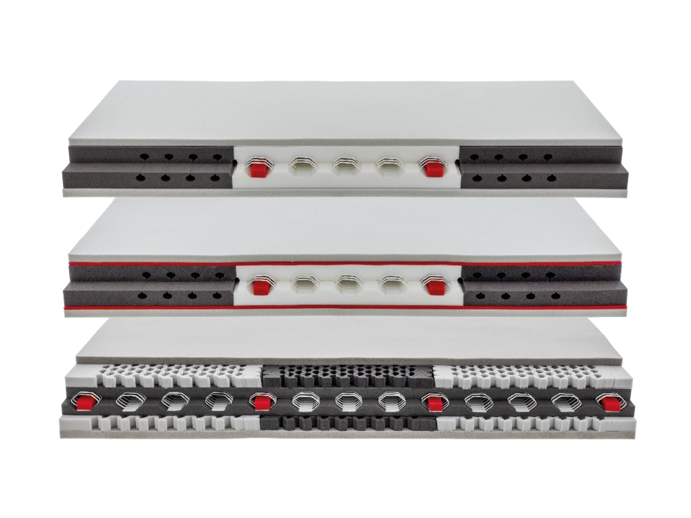 Die Modelle überzeugen mit der einzigartigen Schnitttechnik der Schaumpolster, garantiert hervorragende Anpassungsfähigkeit und eine enorme Druckentlastung von Muskeln und Gelenken.