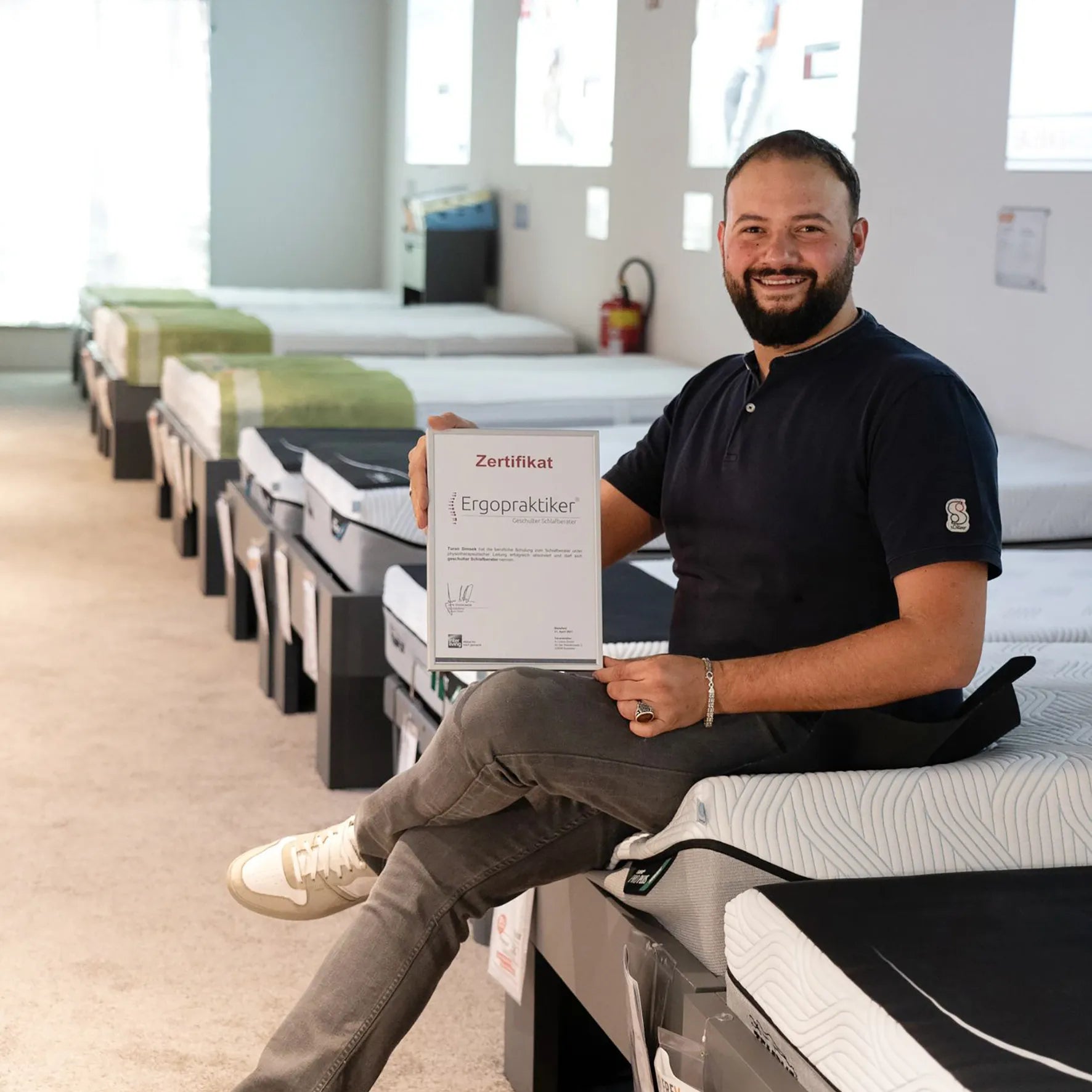 Die geeignete Matratze für die individuellen Bedürfnisse zu finden, erfordert qualifizierte Beratung. Unsere durch ein Fachseminar unter ärztlicher Aufsicht geprüften Schlafberater garantieren eine kompetente Schlafberatung, die auf modernsten Kenntnissen aus Medizin und Schlafforschung basiert. Lassen Sie sich deshalb beim Matratzenkauf von den Interliving FREY Ergopraktikern* beraten, denn die richtige Matratze kann so manche Rückenkrankheiten nicht nur lindern, sondern auch im Voraus verhindern.