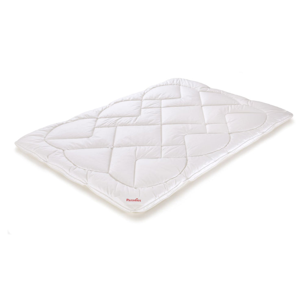 Die Bettdecke ist gefüllt mit der kuscheligen Textilfaserfüllung Paradies Fill® Comfort. Umhüllt wird die Füllung von einem Gewebe aus Paradies Greentex® BIO-Baumwolle. Die seidig weiche Aloe-Vera Gewebeveredelung sorgt für ein intensives Gefühl des Wohlbefindens. Die 4-Jahreszeiten-Bettdecke bestehend aus zwei unterschiedlich dicken Bettdecken, welche per Druckknopf verbunden werden können, eignet sich perfekt für jede Jahreszeit. So können Sie die etwas fülligere Bettdecke im Frühjahr und Herbst nutzen und im Sommer die etwas weniger gefüllte Bettdecke. Zusammengeknüpft hält die Bettdecke im Winter besonders warm.