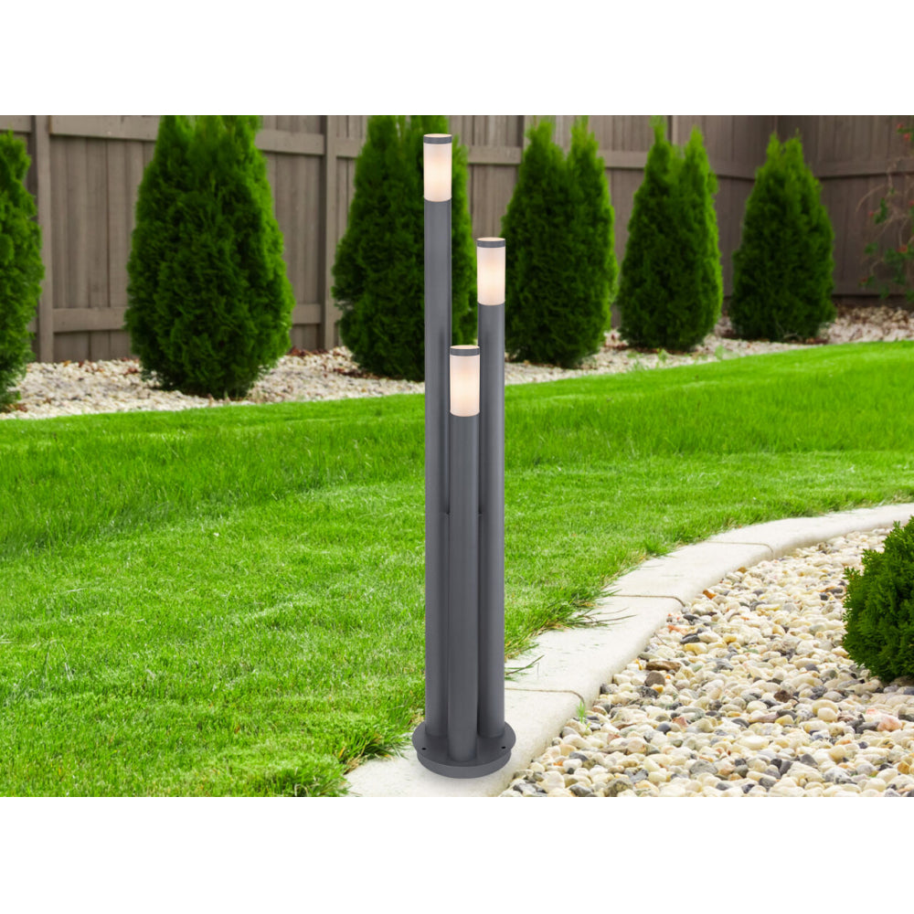 Diese elegante Außenleuchte der Serie Boston zeichnet sich durch ihr stilvolles Design und die tolle Verarbeitung aus. Die formschöne Lampe aus Edelstahl in der Farbe Anthrazit, ist aufgrund ihrer Schutzart IP44 bestens für den Außenbereich geeignet. Dieses Modell hat eine Gesamthöhe von 170 cm und ist mit drei E27 (max. 60W) Fassungen ausgestattet. Auf Grund der Stromersparnis und Langlebigkeit empfehlen wir ihnen LED-Leuchtmittel zu verwenden. Um das Gesamtbild im Garten zu komplettieren, empfehlen wir weitere Modelle aus dieser Serie zu benutzen. Ein Hingucker ist ihnen damit sicherlich garantiert.