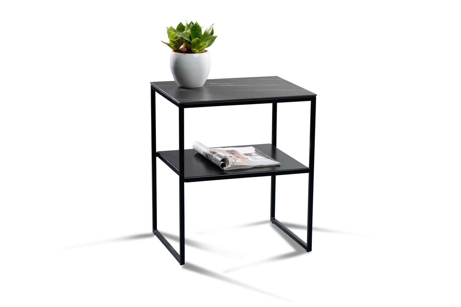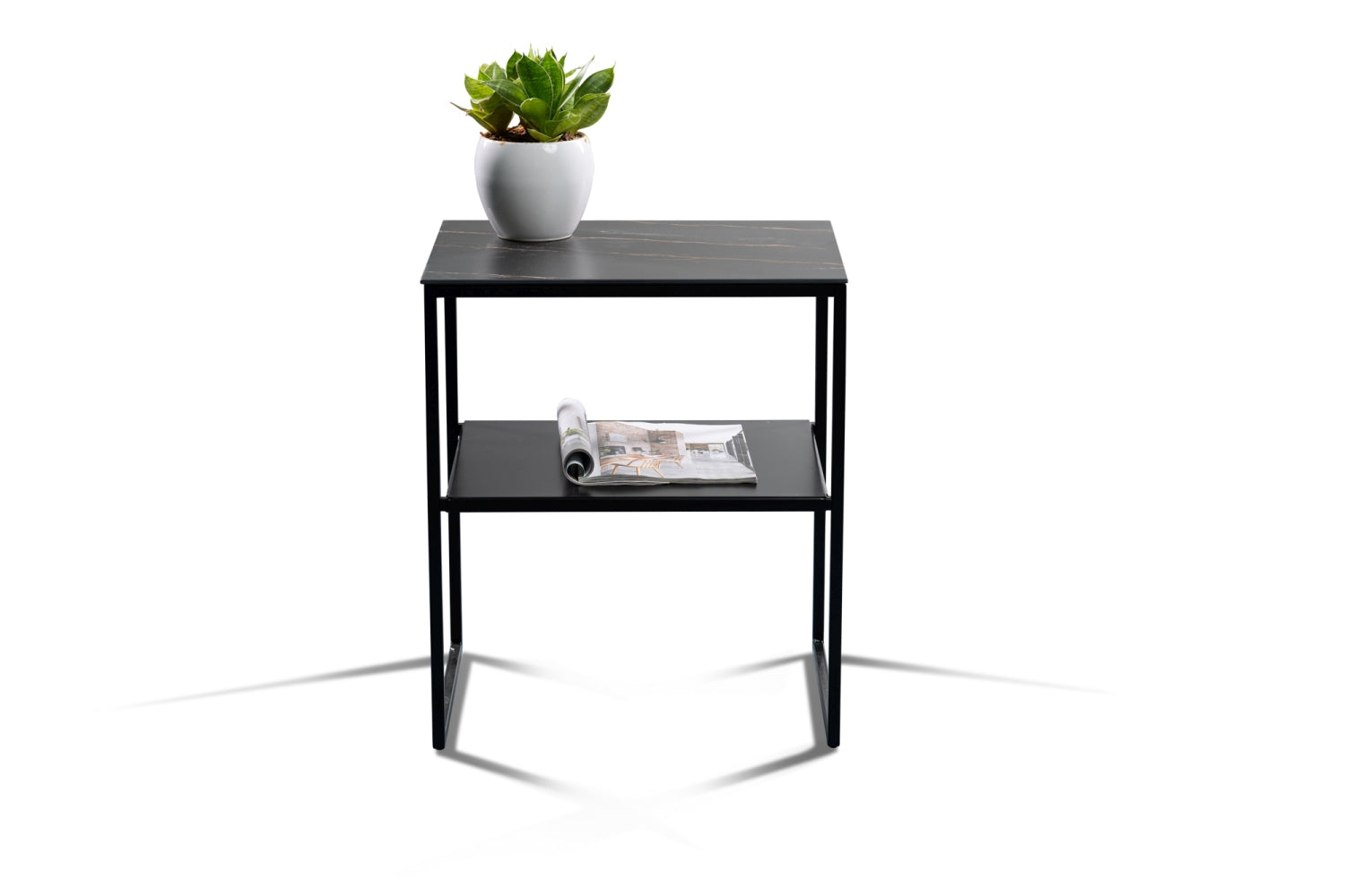 Erleben Sie den modernen Couchtisch "Medina 2". Das hochwertige Metall sorgt für Langlebigkeit und eine zeitlose Optik. Deckplatte: gesinterter Stein dunkel