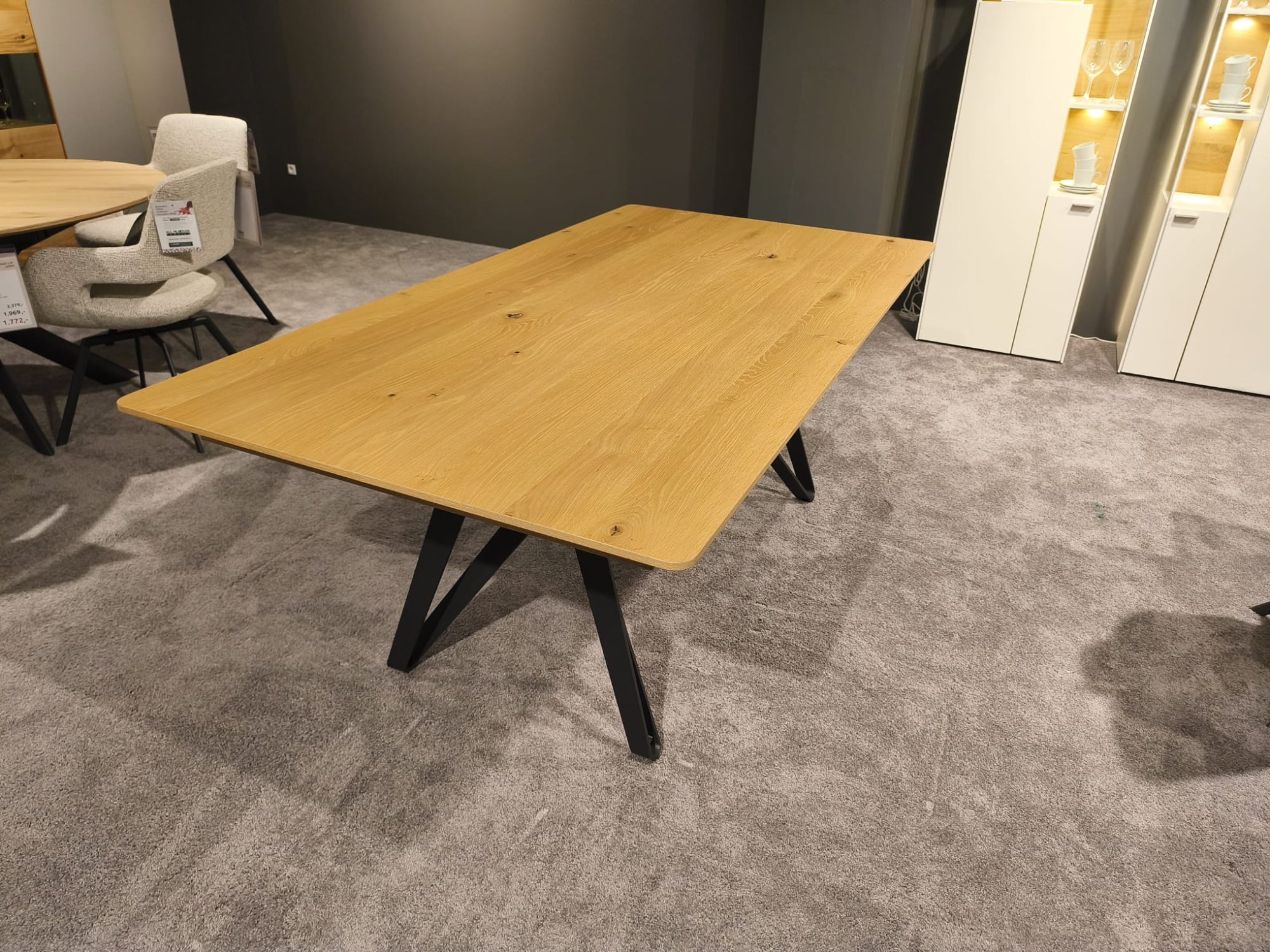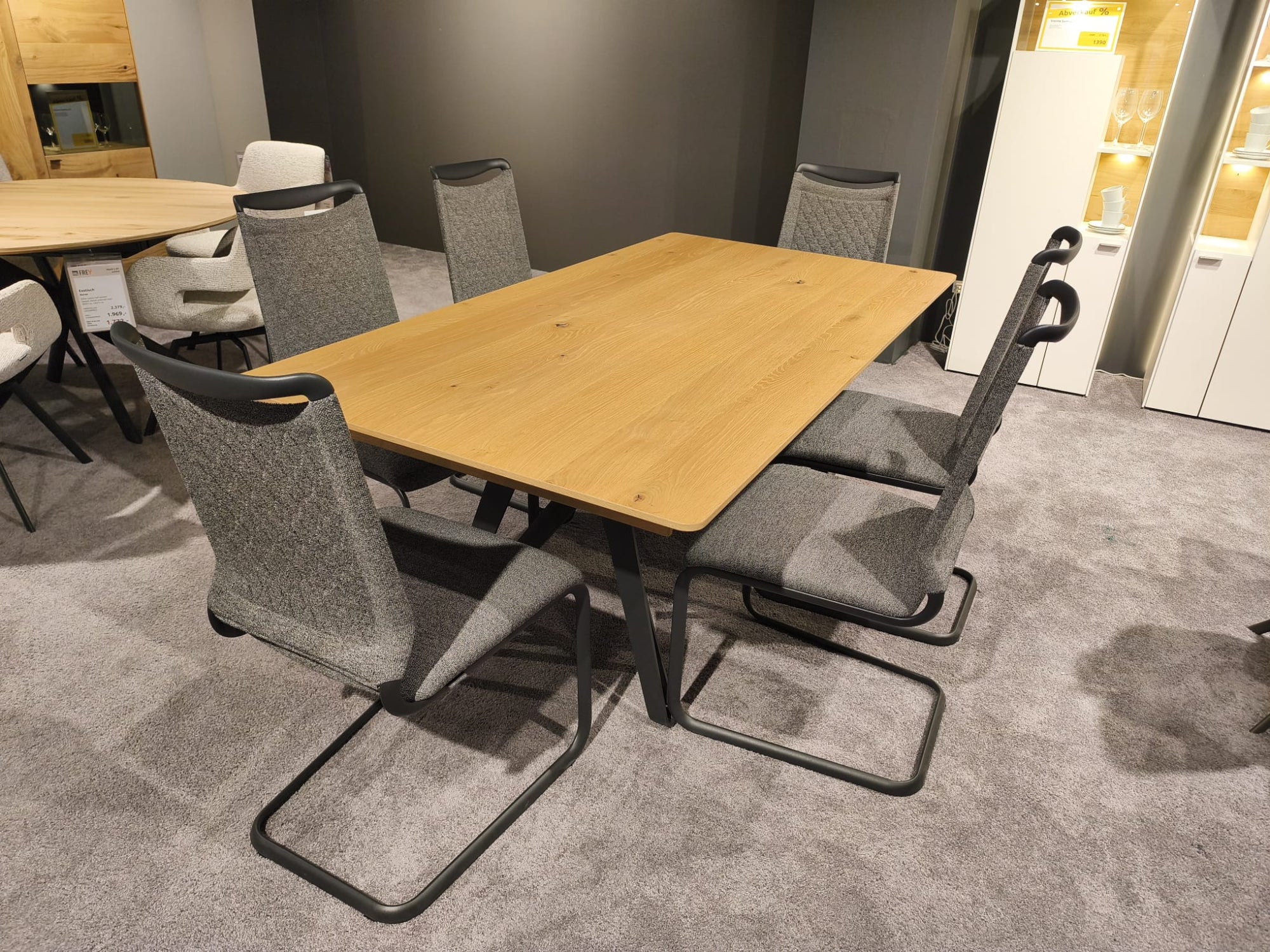 Der Esstisch Rios / ET 116 RON vereint natürliche Eleganz mit modernem Industrial-Style. Die Tischplatte aus heller, soft gebürsteter und geölter Wildeiche strahlt Wärme aus, während das Metallgestell in anthrazit matt für Stabilität und zeitgemäßen Charakter sorgt. Dank des integrierten Tischauszugs von 100 cm bietet er flexibel Platz für Familie und Gäste.