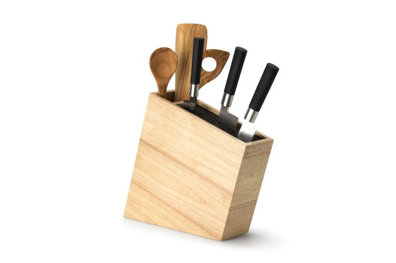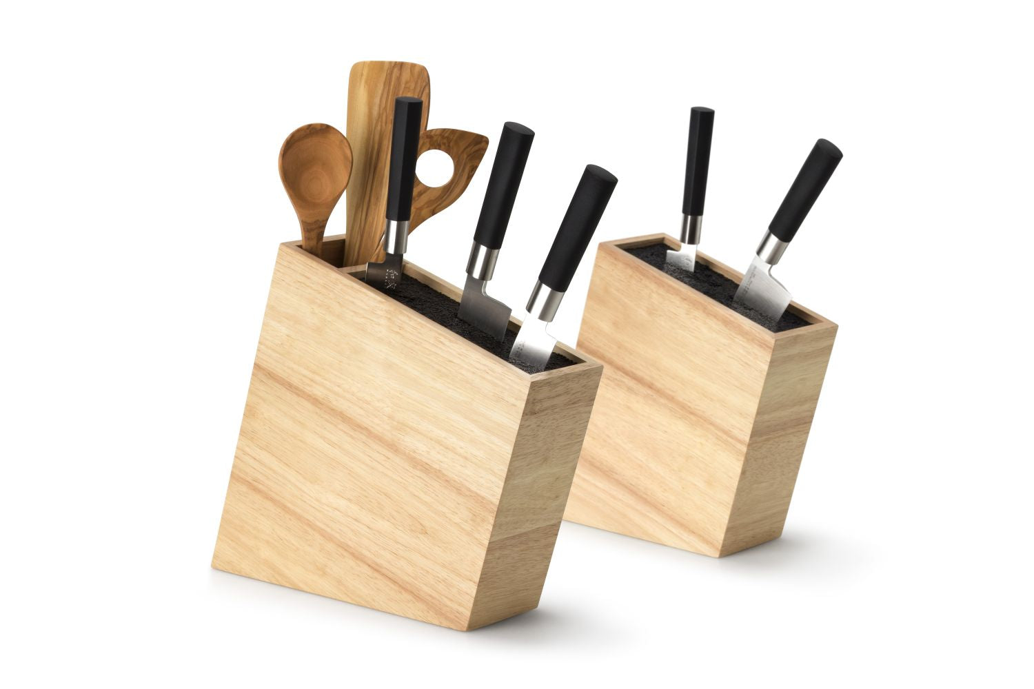 Der superschmale, schräge Messerblock bietet durch seinen flexiblen Kunststoffeinsatz viel Platz zur individuellen Aufbewahrung von Messer aller Art und ist zudem noch platzsparend. Dieser Messerblock ist zusätzlich mit einem Utensilienbehälter ausgestattet.