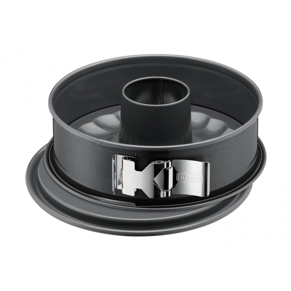 Entscheidend für die Funktion jeder Springform ist ihr Verschluss. Daher hat KAISER den neuen SafeClicK Mechanismus entwickelt, mit dem die Springformen der Serie La Forme Plus absolut auslaufsicher sind. Sie lassen sich dank einer vergrößerten, ergonomisch optimierten Grifffläche leichter öffnen und schließen als Backformen mit gewöhnlichem Spannhebel – ideal für Links- und Rechtshänder. Ins Auge fällt auch die formschöne "K"-Optik des Spannhebels. Alle La Forme Plus Springformen besitzen zudem die keramische Antihaftbeschichtung KAIRAMIC®, damit Kuchen, Brot und Quiche nicht anbacken. Die kratzfesten Böden der Formen sind mit einer glasharten Emaillierung versehen, auf der Messer keine Schnittspuren hinterlassen. Die langlebigen La Forme Plus Backformen werden in Deutschland gefertigt und überzeugen mit extra schwerer, robuster Qualität.