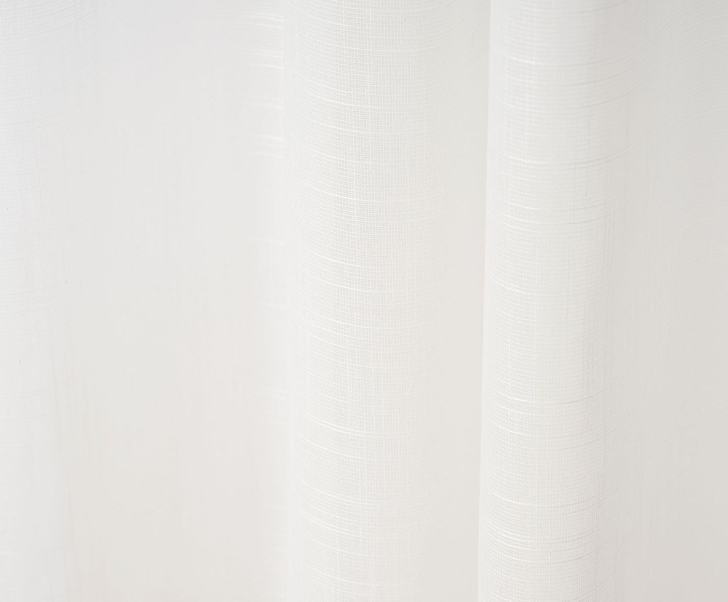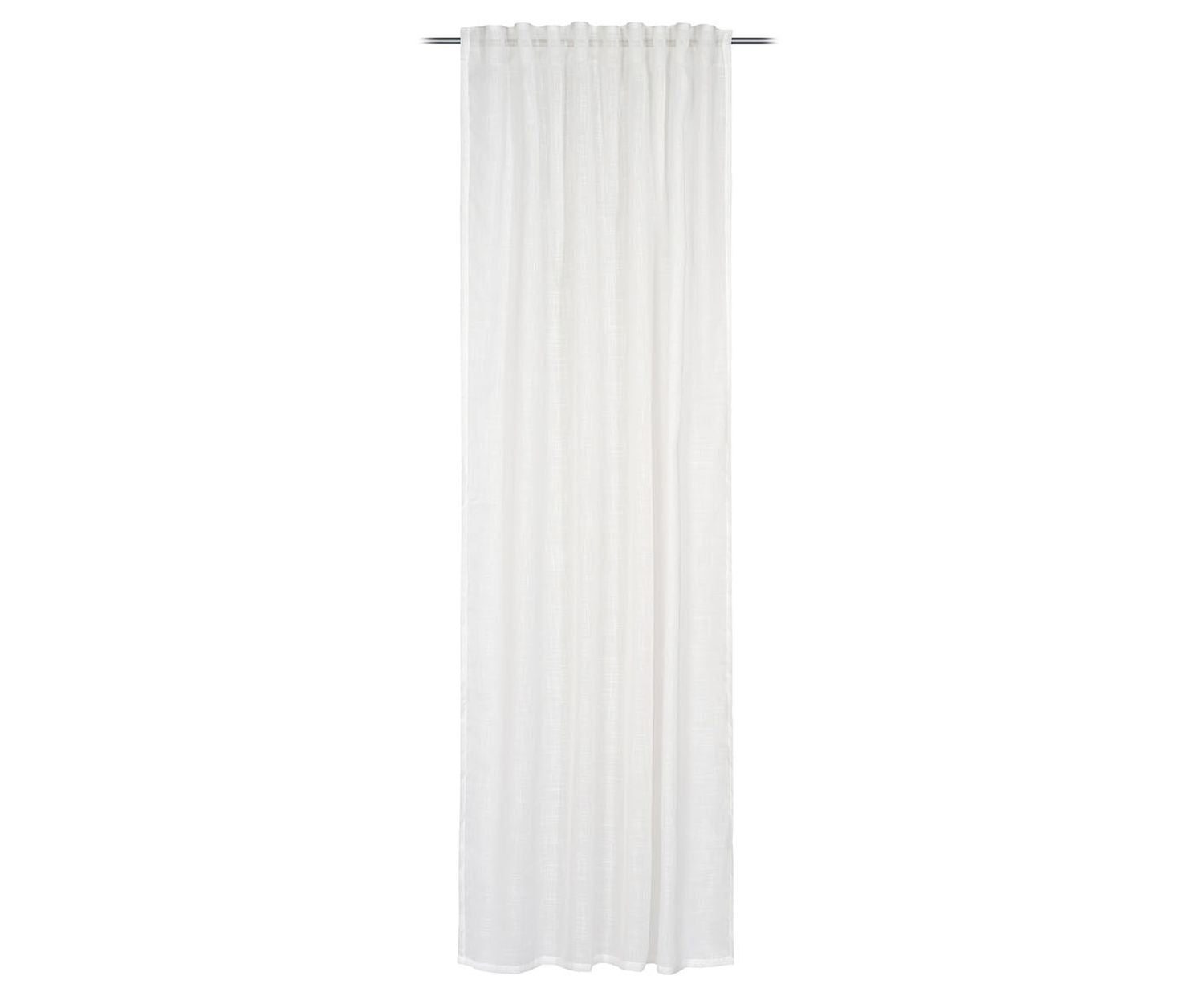 Halbtransparenter Seitenschal mit verdeckter Schlaufe als Kombiband, auf rustikaler Grundware in Naturoptik.