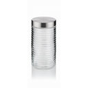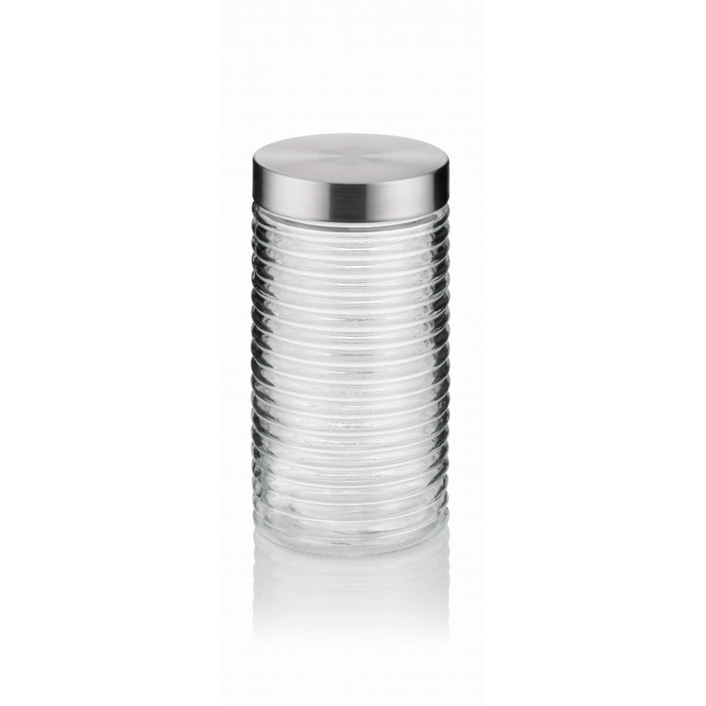 Zu den alltäglichen Herausforderungen im Haushalt gehören Ordnung und Aufbewahrung mit System. Kela führt verschiedene Storage-Systeme im Sortiment. Die Vorratsdose Diana aus Glas mit geriffelter Oberfläche ist eine der vielen Serien im Bereich Aufbewahrung. Die Glasdose hat einen Edelstahldeckel und ist in 4 Größen erhältlich. Durchmesser11cm, Höhe 22 cm, 1,6 L.