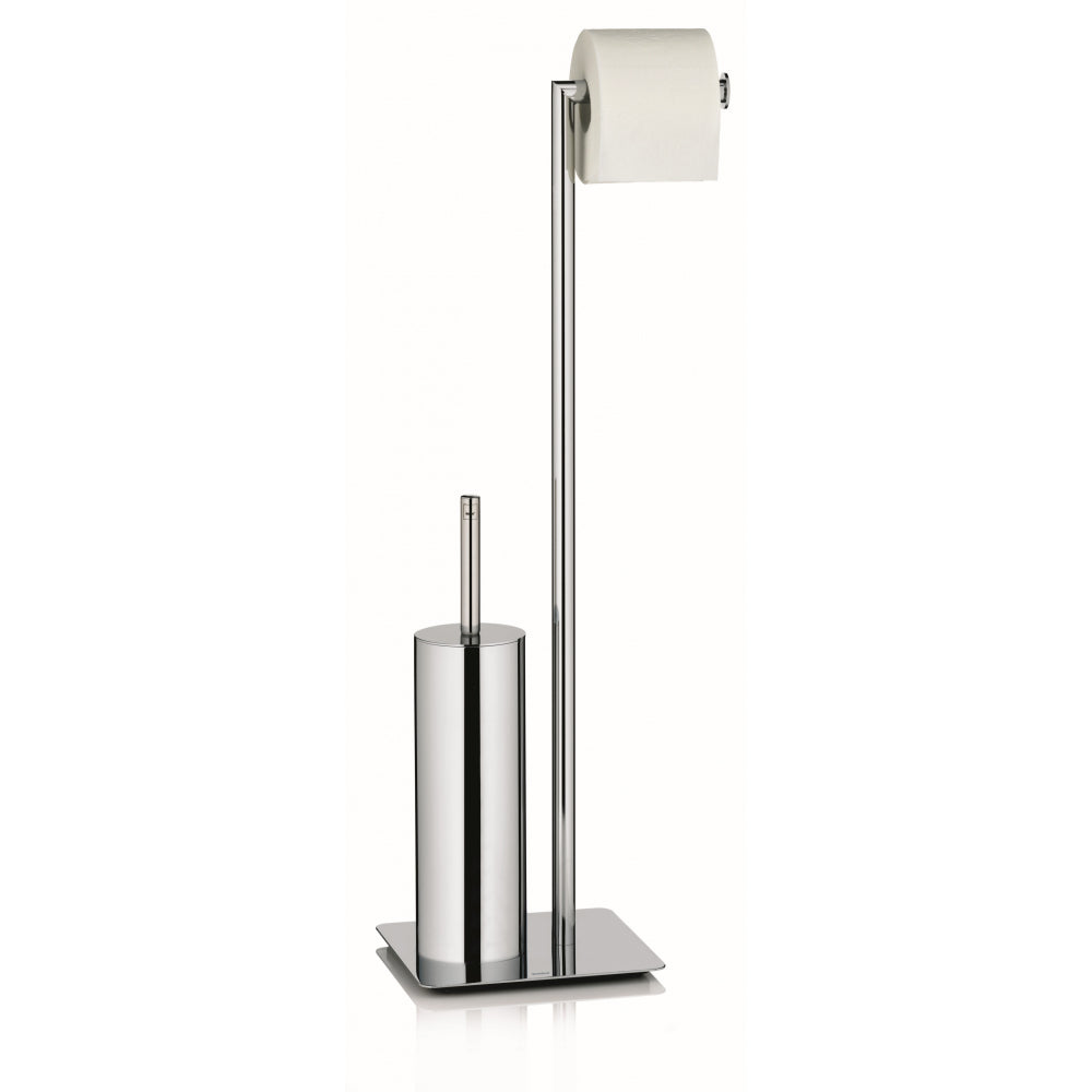 Schaffen Sie Ordnung in Ihrem Badezimmer mit dieser funktionalen WC-Garnitur Style. Die kompakte und gleichzeitig freistehende Toilettengarnitur von kela können Sie in jedes Bad sowie in jede Nische Ihres kleinen Gäste-WCs stellen. Die hochwertige WC-Garnitur besteht aus verchromtem Metall, ein Material, das optisch perfekt zu Möbeln verschiedener Einrichtungsstile passt. Zu dieser modernen Standgarnitur gehören eine Stange mit einer Halterung für Toilettenpapier und ein WC-Bürstenbehälter mit einem herausnehmbaren Plastikbehälter. Zusätzlich verfügt die Kombination für Ihr WC über eine WC-Bürste mit weißem Bürstenkopf, die sich über einen Edelstahlgriff aus der Halterung nehmen lässt. Für besonders hohe Hygienestandards ist der Bürstenkopf austauschbar. Die Garnitur steht auf einer Bodenplatte mit den Maßen von ca. 20 x 20 (BxL) und ist insgesamt ca. 71 cm hoch.